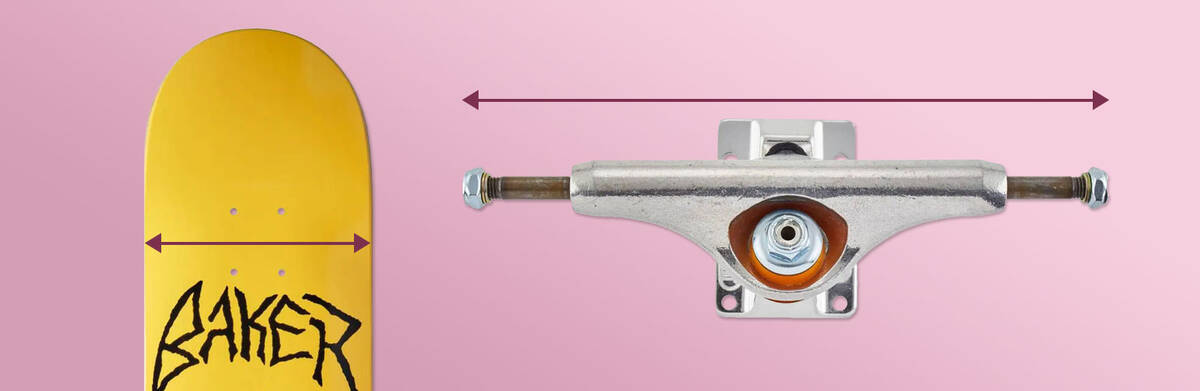 Pour aligner correctement les platines de skateboard et les trucks, il est généralement conseillé de faire correspondre la largeur de votre deck de skateboard à la largeur de l'axe de vos trucks de skateboard. Idéalement, la largeur de l'axe du Truck doit être alignée sur la largeur du deck et ne doit pas varier de plus d'un quart de pouce.