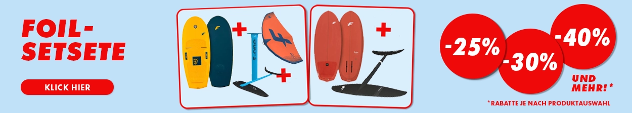 Foiling liegt derzeit voll im Trend, und wir freuen uns, Ihnen den Foilflügel Ihrer Träume anbieten zu können! Werfen Sie einen Blick auf unser Angebot an Foliersets, um ein Set auszuwählen, das Ihren Anforderungen entspricht - und erkunden Sie beim Stöbern auch unser fantastisches Angebot an Foilboards, die Ihre Wahl ergänzen. Sollte Ihr vorhandener Aufbau Ersatzkomponenten benötigen, dann schauen Sie sich unser Sortiment an Tragflächenersatzteilen an.